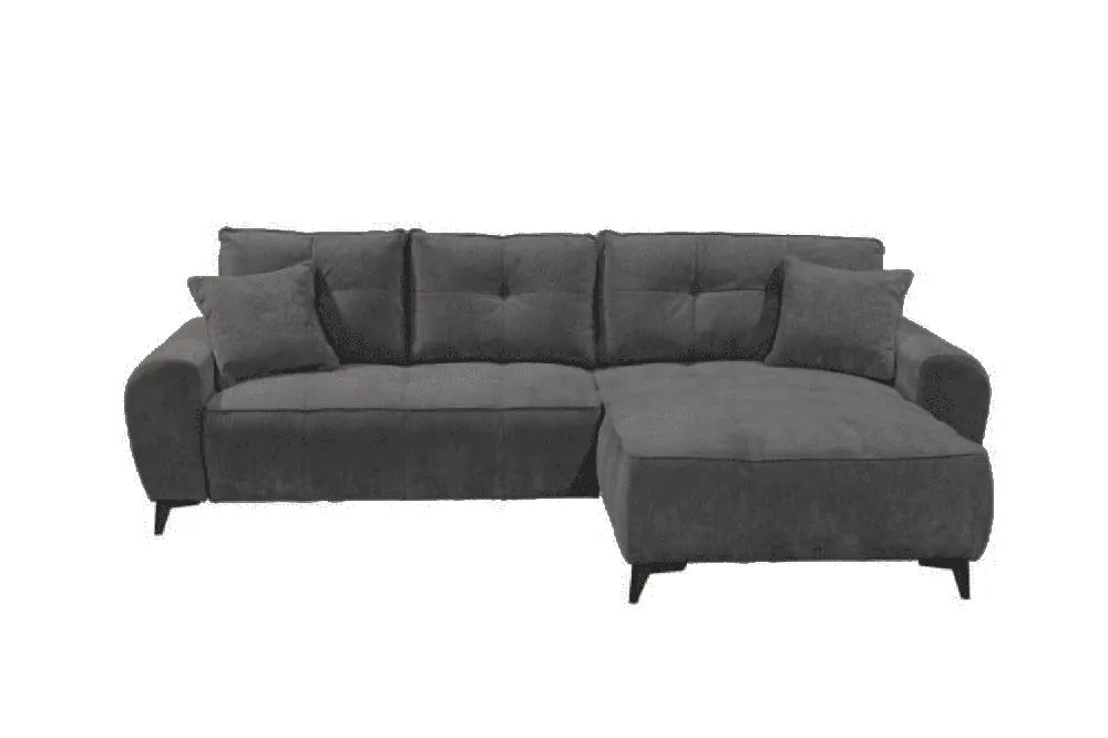 Stylisches Ecksofa Anton mit Schlaffunktion und Bettkasten beidseitig montierbar im robustem Luxus-Webstoff Flachgewebe  Auf die Plätze, Fertig, Los! Auf dem Ecksofa Anton von Black Red White mit einem Stellmaß von 289 x 189 ist genügend Platz, damit sich jeder seinen Lieblingsplatz sichern kann. Die knautschige Optik, die voluminösen und gemütlichen Polster mit vielen Kissen lassen das Ecksofa schnell zu ihrem persönlichen Lieblingsplatz werden. Der Besuch möchte doch spontan über Nacht bleiben? Eine integrierte Schlaffunktion lässt Anton im Handumdrehen in ein angenehmes Gästebett mit einer Liegefläche von 222 x 118 cm verwandeln. Das nötige Bettzeug können Sie einfach in dem unter der Bettfunktion gelegenen Bettkasten verstauen. Wählen Sie aus einer von vielen verfügbaren Farben und passen Sie Anton ihrem Wohnzimmer an. Das Sofa kann wahlweise mit Liegefläche links oder rechts aufgebaut werden. Finde bei Myhomelando dein Traumsofa für dein zuhause !!! Maße Ecksofa – alle Maße sind ca. Angaben Gesamt: 289 x 189 cm oder 189 x 289 cm Sitztiefe: 50 cm Sitzhöhe: 42 cm Rückenhöhe: 85 cm Ohne abgebildete Deko wie Kissen etc., Farbe auf dem Foto kann leicht vom Original abweichen (Bildschirm)