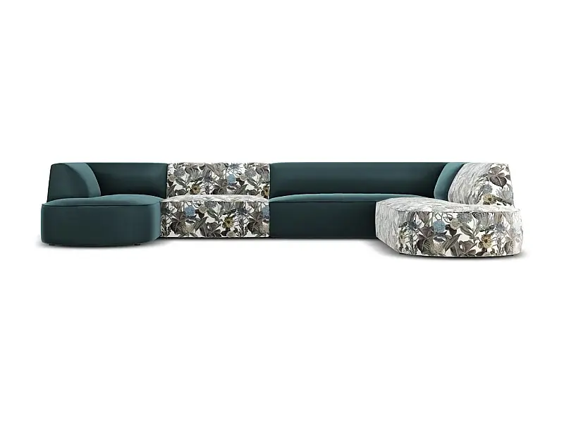 Sonderangebot CXL by Christian Lacroix – 7-Sitzer Panoramasofa rechts „Charles“ Sitzer aus Samt blaues gartenmotiv – 366x273x69cm