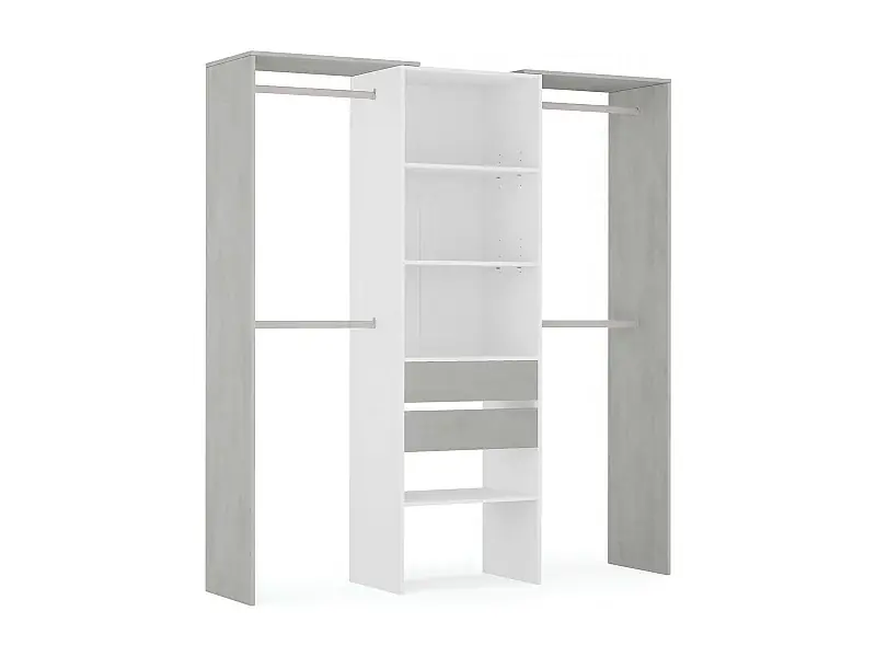 Sonderangebot Kleiderschrank Miramar, Struktur für begehbaren Kleiderschrank, offener Kleiderschrank ohne Türen, begehbarer Kleiderschrank, 179 x 50 x 202 cm, Weiß und Zement