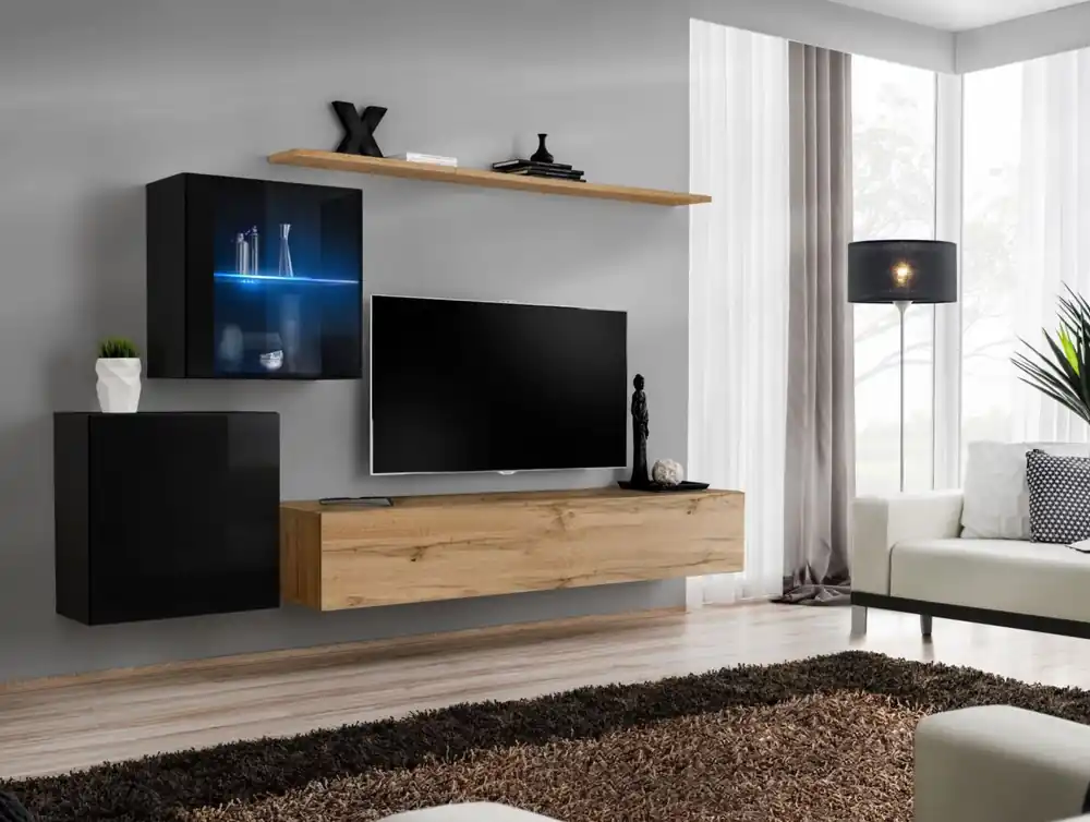 Sie sind auf der Suche nach einem modernen, funktionalen und zugleich stilvollen Möbelstück? Dann ist die Stylische Wohnwand Balestrand 238 in Eiche Wotan / Schwarz genau das Richtige für Sie! Zögern Sie nicht und holen Sie sich diese Wohnwand in Ihr Zuhause.