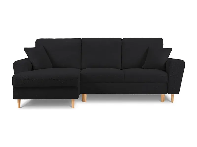 Super-Preis Cosmopolitan Design – 4-Sitzer ausklappbares Ecksofa links mit Container „Kyoto“ aus Boucle schwarz – 241x145x88cm