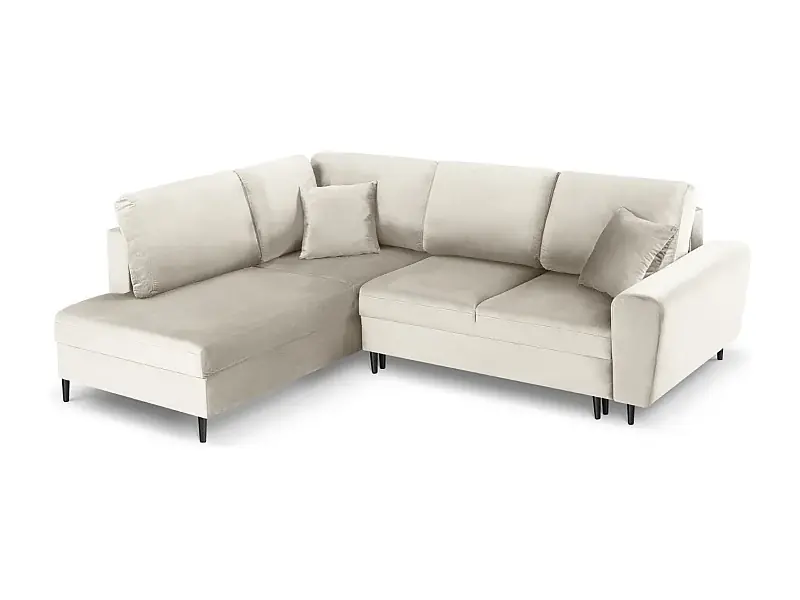 Super-Preis Cosmopolitan Design – 5-Sitzer ausklappbares Ecksofa links mit Container „Kyoto“ aus Samt leichtes beige – 243x194x88cm