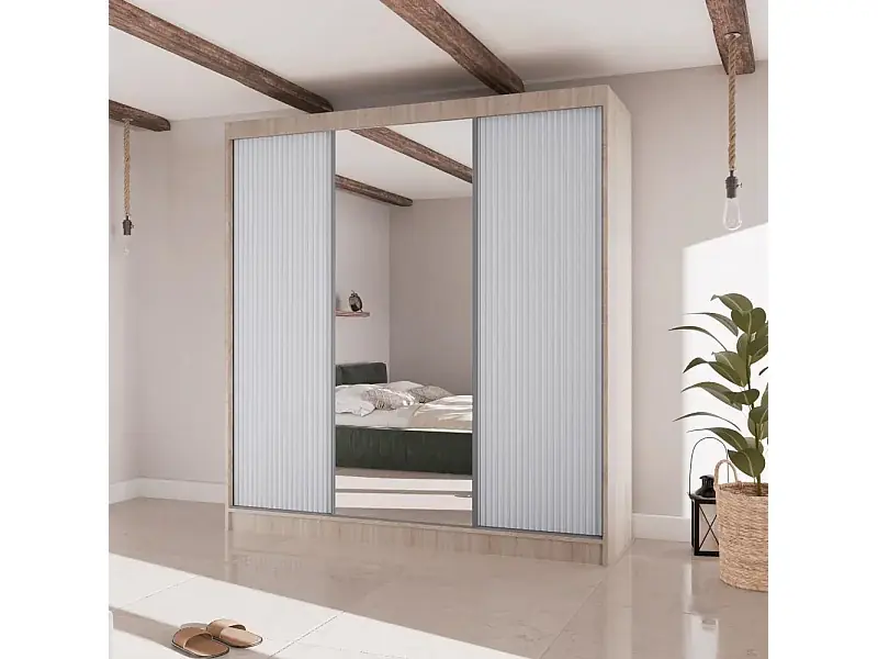 Super-Preis SCHWEBETÜRENSCHRANK Ramos II 200/61/215 eiche sonoma+weiß