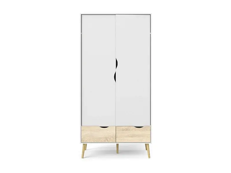 Top-Angebot Kleiderschrank mit 2 Türen, 2 Schubladen weiß und Eiche Dekor B98,7 cm – BILLUND