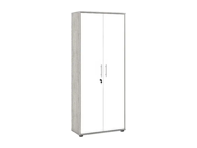 Top-Preis 2-türiger MehrzweckschrankCambrils, Hilfsschrank, Schuhschrank, Multifunktions-Bücherregal mit 2 Türen, 79x34h188 cm, Weiß und Zement