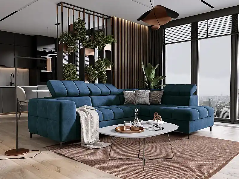 Top-Preis Ecksofa PABLO 279×201 cm, Schlafsofa, verstellbare Kopfstützen, Bettkasten, Metallfüße, CLOUD-Stoff, gerade Anordnung, blau