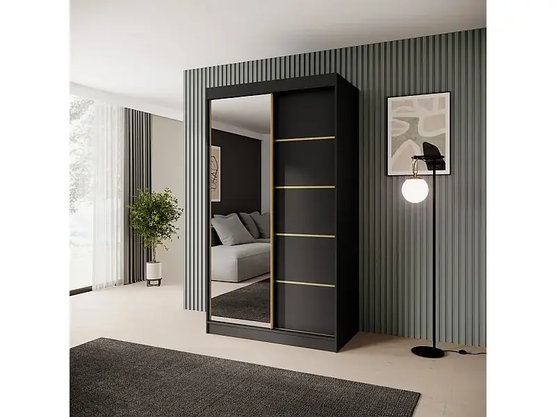 Top-Preis SCHWEBETÜRENSCHRANK Marika Lux, 2-Türig, mit Schubladen, Schwarz+Gold, 120 cm