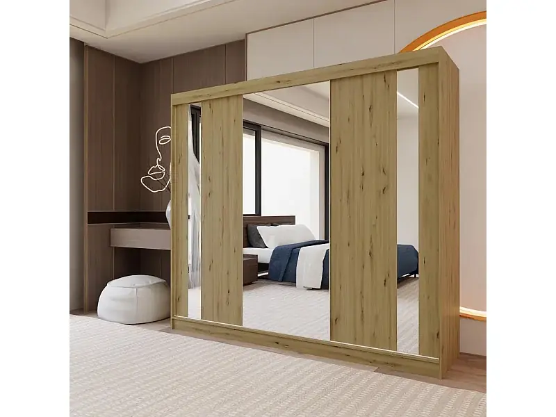 Top-Seller SCHWEBETÜRENSCHRANK Gaja 240/216/61 eiche Artisan mit Spiegel und Schubladeneinsätze