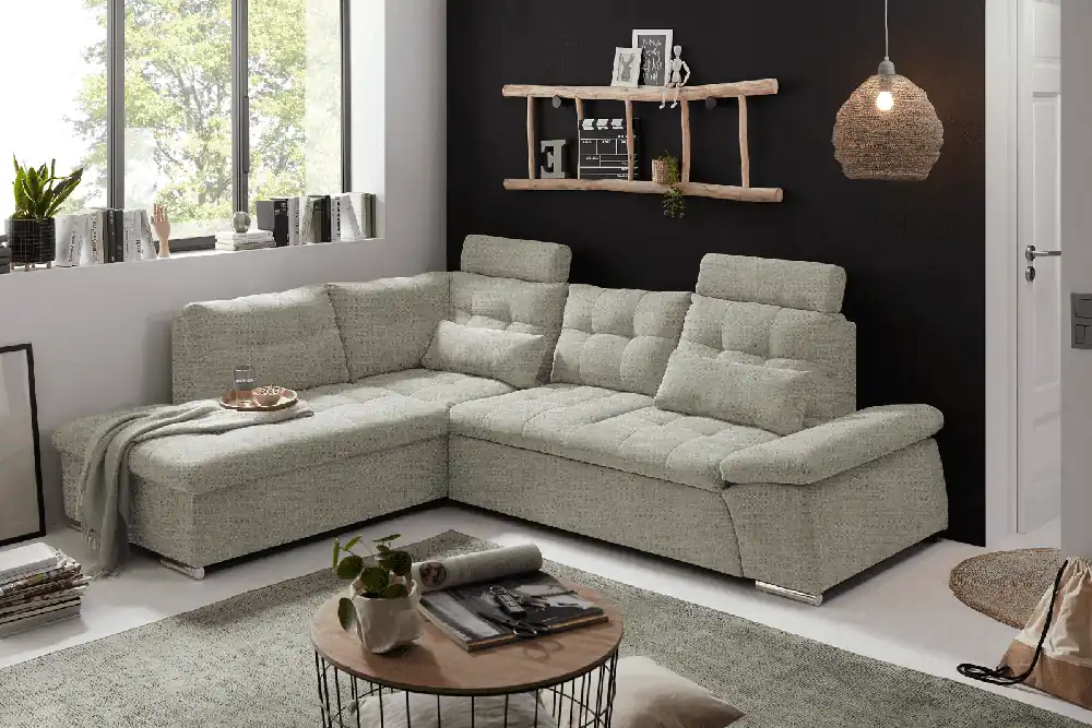 Versand Am Gleichen Tag Ecksofa Medan von Ed Exciting Design Stone – Modernes Sofa mit Schlaffunktion & Glow Mikrofaser