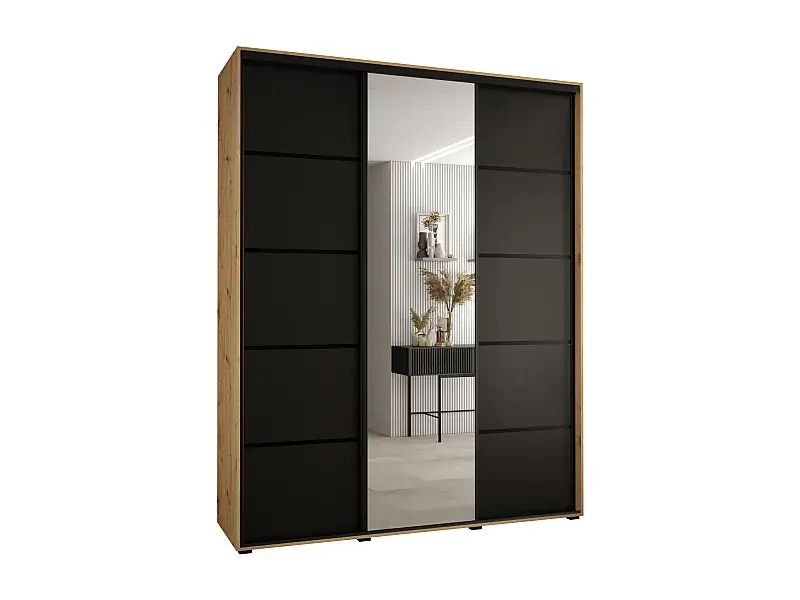 Versand Am Gleichen Tag SCHWEBETÜRENSCHRANK DAVOS 5 235,2/200/45 3-türig (Artisan/Schwarz/Schwarz)