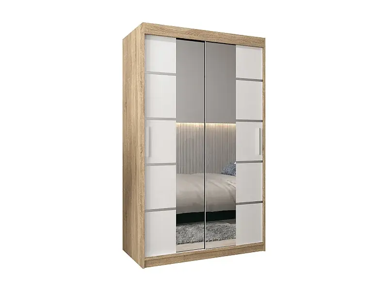 Versand Am Gleichen Tag SCHWEBETÜRENSCHRANK VERONA 4 200/120/62 2-türig (Sonoma/Weiß)