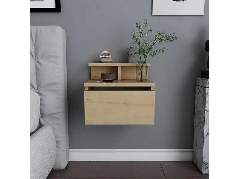 Wand-Nachttisch aus Holz VISBY mit Schublade und Regal Sonderangebot