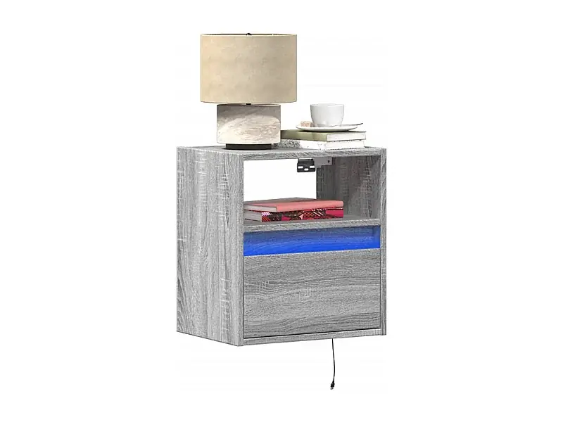 Wand-Nachttisch mit LED-Leuchten Grau Sonoma Jetzt Kaufen