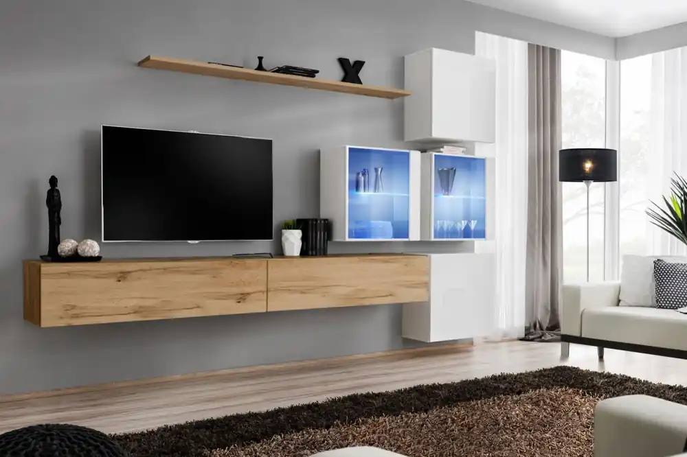 Unsere Wohnwand im edlen Design Balestrand 299 wird Ihr Wohnzimmer in einen stilvollen und gemütlichen Ort verwandeln, der die Werte Ihres Hauses widerspiegelt. Jene mit einem Sinn für elegantes Design und Praktikabilität, werden diese Wohnwand mit ihrem modernen Stil zu schätzen wissen. Unsere Wohnwand ist sehr langlebig, da sie aus hochwertigem laminiertem Material gefertigt und leicht zu reinigen ist.