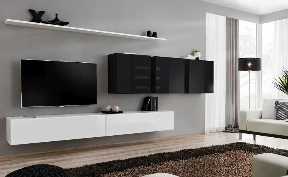 Wenn sie auf der Suche nach einer modernen und platzsparenden Speicherlösung für Ihr Wohnzimmer sind, dann ist die Wohnwand im schlichten Design Balestrand 101 genau das Richtige für Sie. Mit ihrem eleganten Design in den Farben Weiß und Schwarz fügt sie sich nahtlos in jedes Wohnambiente ein und wird zum zentralen Blickfang in Ihrem Wohnzimmer.