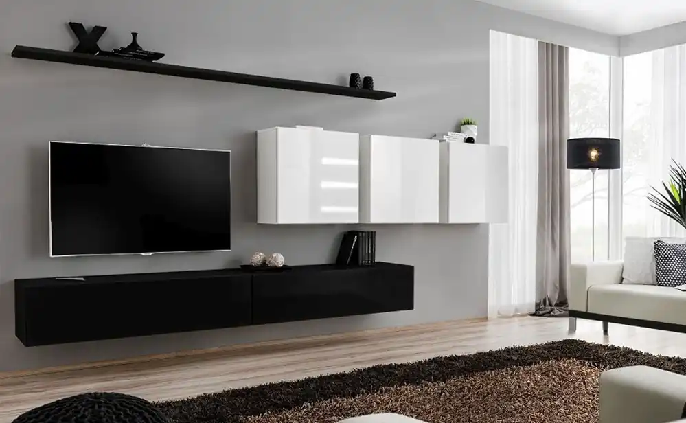 Wohnwand mit genügend Stauraum Balestrand 102, Farbe: Schwarz / Weiß – Abmessungen: 150 x 340 x 40 cm (H x B x T), mit fünf Türen
