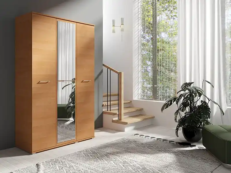 Zertifiziert Dreitrückige Drehtürenschrank SPIEGEL 120 cm × 200 cm ERLE | Regale + Kleiderstange