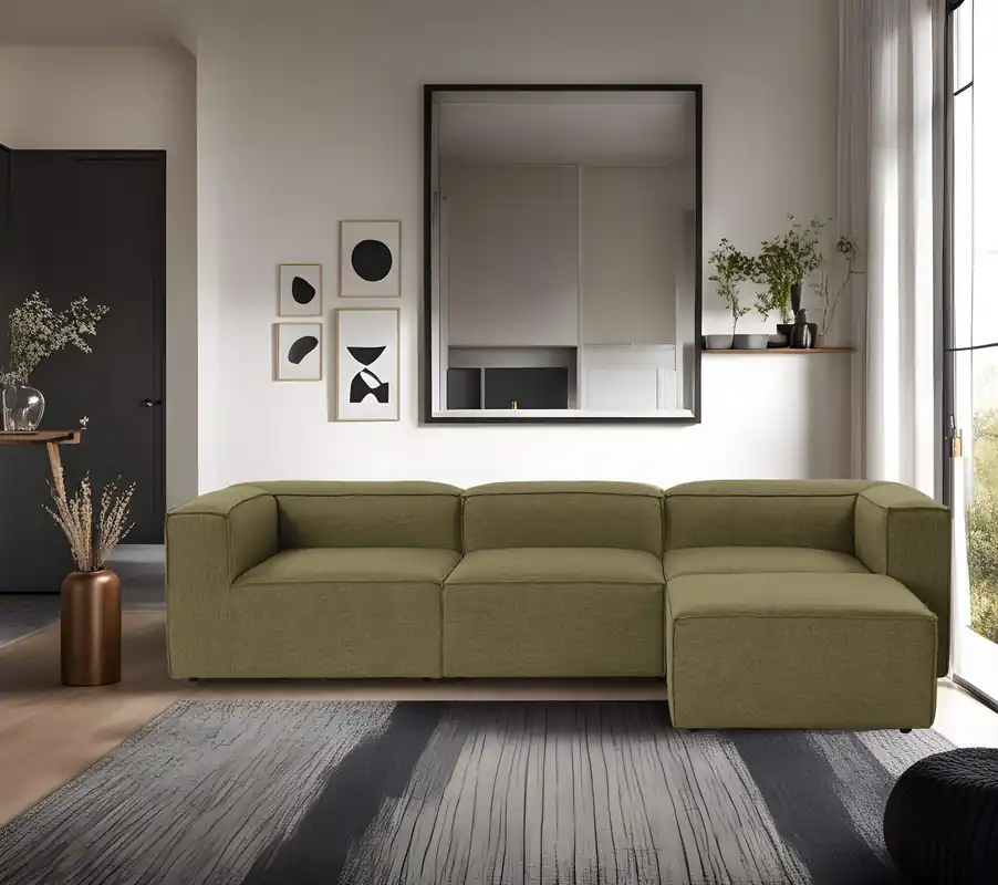 Stylisches Ecksofa Anton mit Schlaffunktion und Bettkasten beidseitig montierbar im robustem Luxus-Webstoff Flachgewebe Auf die Plätze, Fertig, Los! Auf dem Ecksofa Anton von Black Red White mit einem Stellmaß von 289 x 189 ist genügend Platz, damit sich jeder seinen Lieblingsplatz sichern kann. Die knautschige Optik, die voluminösen und gemütlichen Polster mit vielen Kissen lassen das Ecksofa schnell zu ihrem persönlichen Lieblingsplatz werden. Der Besuch möchte doch spontan über Nacht bleiben? Eine integrierte Schlaffunktion lässt Anton im Handumdrehen in ein angenehmes Gästebett mit einer Liegefläche von 222 x 118 cm verwandeln. Das nötige Bettzeug können Sie einfach in dem unter der Bettfunktion gelegenen Bettkasten verstauen. Wählen Sie aus einer von vielen verfügbaren Farben und passen Sie Anton ihrem Wohnzimmer an. Das Sofa kann wahlweise mit Liegefläche links oder rechts aufgebaut werden. Finde bei Myhomelando dein Traumsofa für dein zuhause !!! Maße Ecksofa – alle Maße sind ca. Angaben Gesamt: 289 x 189 cm oder 189 x 289 cm Sitztiefe: 50 cm Sitzhöhe: 42 cm Rückenhöhe: 85 cm Ohne abgebildete Deko wie Kissen etc., Farbe auf dem Foto kann leicht vom Original abweichen (Bildschirm)