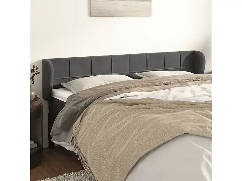 Zertifiziert Kopfteil mit Ohren Dunkelgrau 203x23x78/88 cm Samt