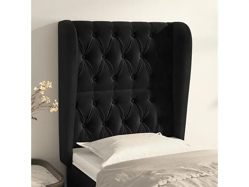 Zertifiziert Kopfteil mit Ohren Schwarz 83x23x118/128 cm Samt