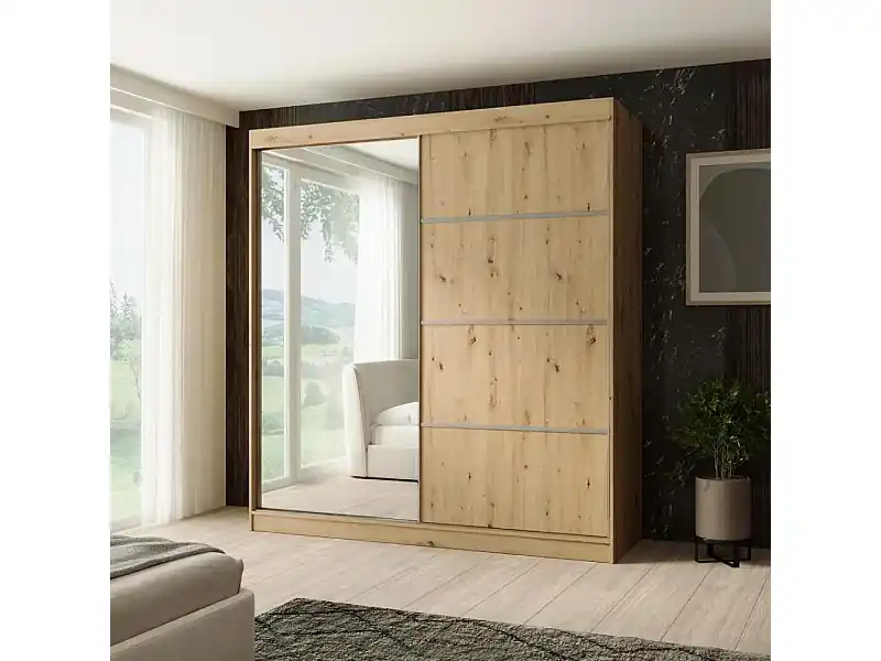 Zertifiziert SCHWEBETÜRENSCHRANK Paco 200/215/61 2-türig eiche Craft mit Spiegel