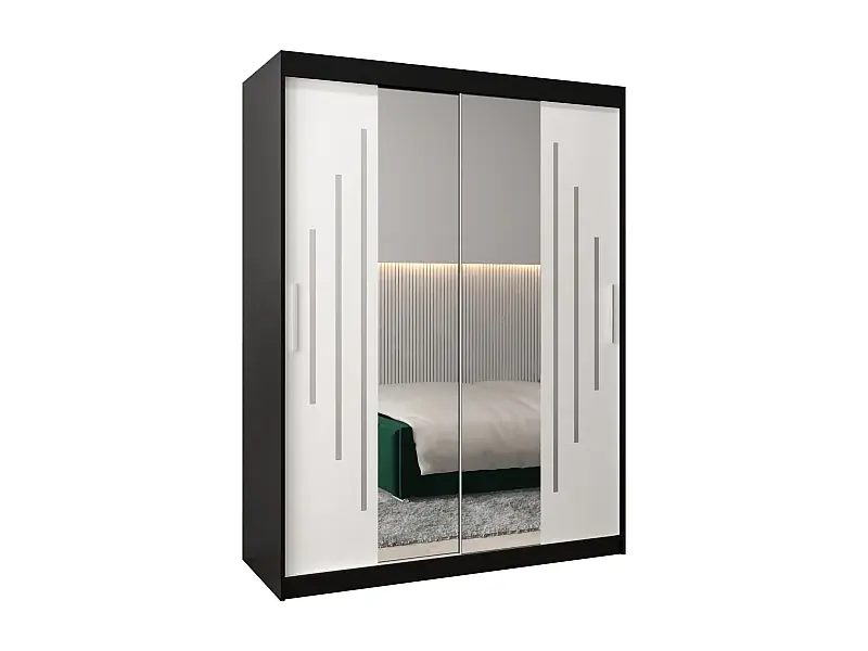 Zertifiziert SCHWEBETÜRENSCHRANK YORK 1 200/150/62 2-türig (Schwarz/Weiß)