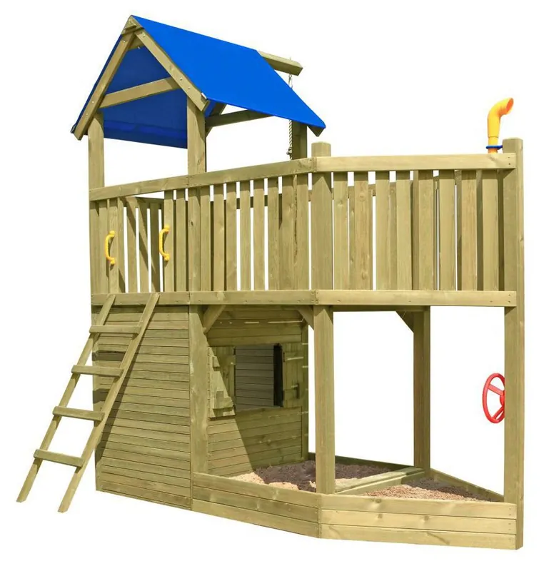 Spielturm K33 inkl. Anbauelement, Piratenschiff und Sandkasten – Abmessungen: 340 x 225 cm (L x B)
