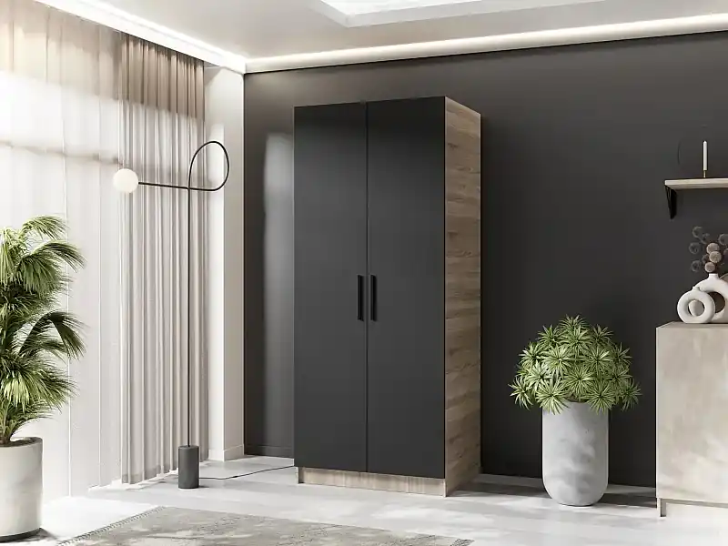 Zweitüriger Kleiderschrank GOLD 2D 78 Eiche Sonoma + Schwarz Garantierte Lieferung