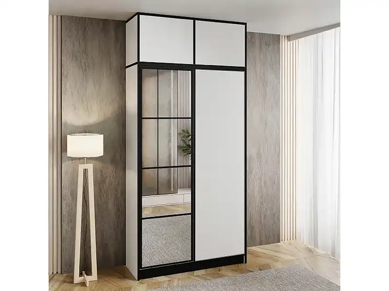 Zweitüriger Schrank mit Spiegel COSTA 2D WEISS mit Aufsatz Schnäppchen